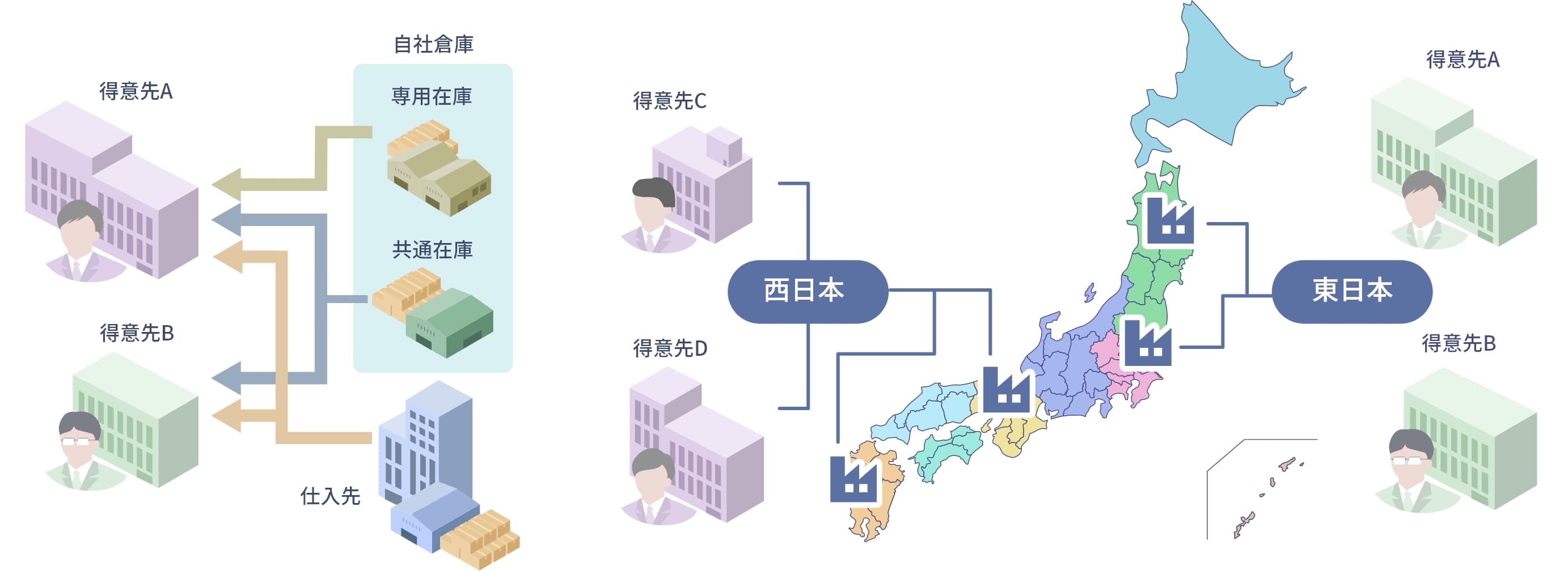 BtoB(企業間取引)を行う製造業や卸売業・小売業では多くの企業様が以下のような特徴を持っています